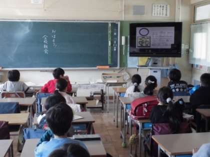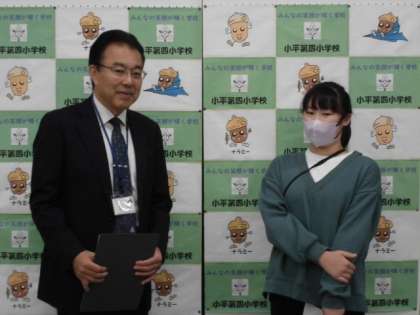 まずはじめに、小平市の小学生フットサル大会で第3位になったレインボーズの代表の児童に賞状を手渡し、頑張った子を称えました。 今日の校長の話は、運動会を振り返って、最高学年の6年生にインタビューをしました。6年1組、2組、こげら、ならのみの各学級から代表児童に来てもらいました。 運動会に向けて、事前に準備したことや努力したこと、当日全力で頑張ったこと、学年や係の仲間と力を合わせて協力したこと、今後に生かしていきたいことなどを聞きました。さすが6年生だけあって、自分のことだけではなく、学校全体のことや下級生のことも気にかけた素晴らしい答えが返ってきました。 最後に11月の安全指導で、交通安全について担当の先生から話がありました。特に自転車の安全な乗り方や整備の仕方について、クイズ形式で楽しく聞くことができました。