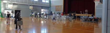 会場づくりをしてくれた6年生と仕事を分担しています。 きびきびと働き、あっという間にいつもの体育館になりました。 ありがとうございます。