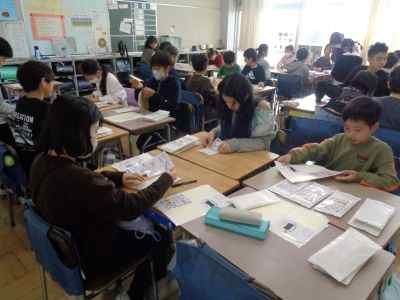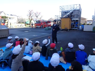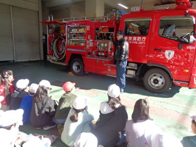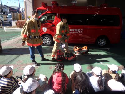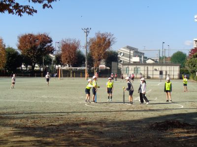 クラスごとに分かれて、消防車の仕組みを見学したり、救助にあたる服装や道具について説明してもらったりしました。質問コーナーでは時間がたりないくらいたくさんの質問をしていました。 4年 体育