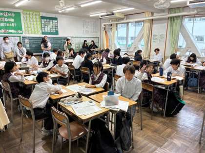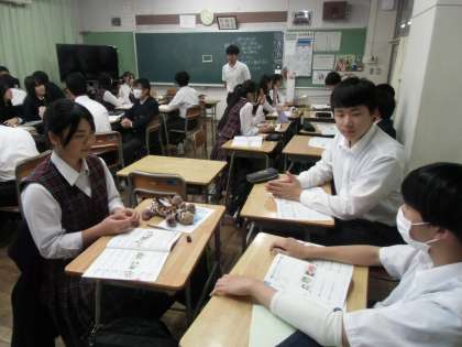 1年生は「出産」を題材として、出産が母親の力だけではなく赤ちゃんの生まれようとする力も大切であることや、生まれてきた命とはどのようなものなのかについて考えました。 個人で考えたり班で話し合ったりし、考えたことを丁寧に表現している姿が印象的でした。 命が大切であるということだけではなく、生まれてきたことは当たり前のことではないこと、また、周囲の命も大切で傷つけてはいけない存在であることを再認識していました。 PTA主催給食試食会
