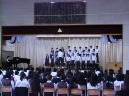 本校合唱コンクールで数名の生徒は発表したのですが、 1,2年生で臨む初めての発表でした。 緊張もあったようですが、堂々と発表することができました。 スキー教室に向けて