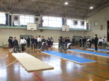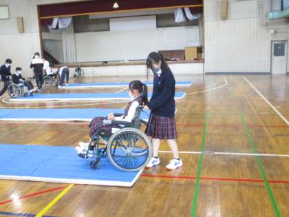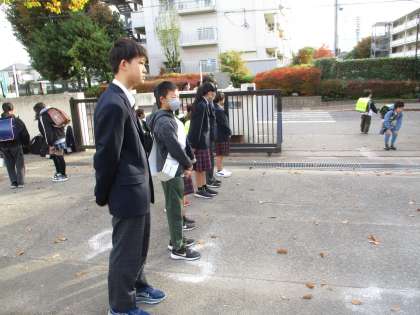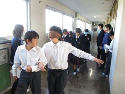小学生の元気な挨拶は中学生にとっても大きな刺激になりました。 1年生福祉体験