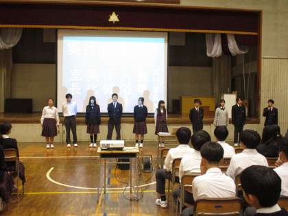 今日の6時間目を使って、スキー教室の概要説明が行われました。 また、10名の実行委員がお披露目されました。 初めての宿泊行事です。自分たちで決めたルールで、楽しく2泊3日過ごします。 当日へ向けて、一つずつ積み重ねていきましょう。 小中連携挨拶運動