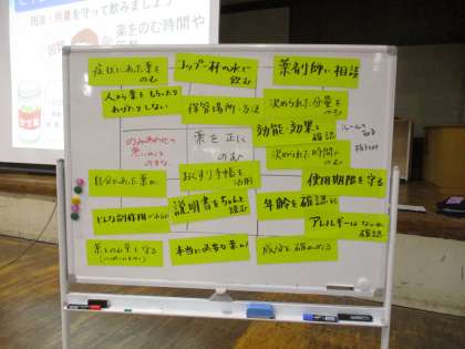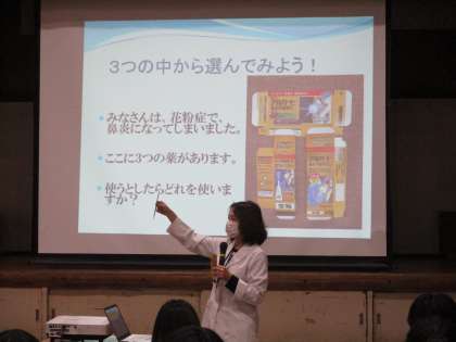 市内各校の中学生2年生にアンケートを実施し、それをもとに現在の小平市、20年後のまちのイメージを考えました。 自分たちが住む街の20年後を考えるというなかなかできない経験を積むことができました。 お薬教室