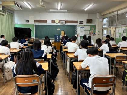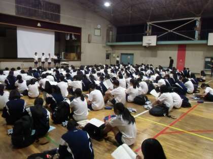 1・2年生の立候補者と応援演説者が演説を行い、その後教室にて投票が行われます。 生徒たちは真剣に演説に耳を傾けています。 選挙管理委員会の生徒たちも、公正な選挙を行うために夏休み前から準備を進めてきました。 川越校外学習事前指導