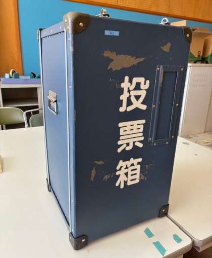 選挙管理委員会の生徒による説明の後、 本物の投票箱を使用して一人一票の投票が行われます。 令和7年度 生徒会選挙(立会演説会)
