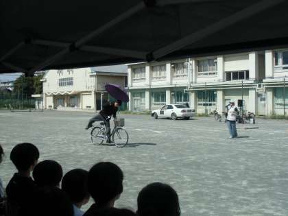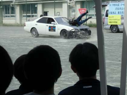 スケアードストレートといって、事故を目前で見ることで交通安全について学びました。 実際に自転車と車の事故、トラックに巻き込まれる自転車、自転車同士の衝突、傘さし運転、自転車のスマホ運転など、どこか他人事と思って、やってしまうかもしれない行動が重大な事故につながる可能性があることを改めて学びました。 実際に車と自転車がぶつかる音や迫力はとてもすごかったです。 生徒のため、危険な事故の現場を再現してくださったスタントの方々、 暑い中生徒のために、テント張りをしていただいたPTAの方々 ありがとうございました。 2学期中間考査終了