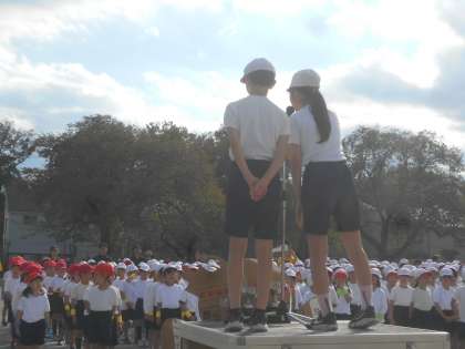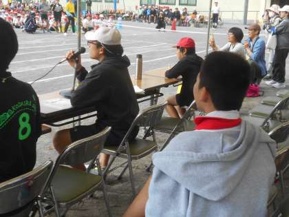 運動会を盛り上げるのは、競技者だけではありません。 運動会といえば、花形は応援団です。 応援団の練習は、本番のわずか10日前から始まりました。 その練習のほとんどは”朝”に行われました。 ほぼ毎日、全力で応援の練習をして、この運動会に臨んだ応援団です。 気迫漲る応援は、いやが上にも運動会を盛り上げました。 それと同じく、運動会を盛り上げたのは、 放送係でした。 正確で聴きやすいアナウンス、 絶妙のタイミングでの実況、 将来はアナウンサーだね!と太鼓判を押したくなるような係の仕事ぶりでした。 その他にも、審判の補助や低学年の児童管理、得点、短距離走のレース順の表示、ゴールテープの担当など5,6年生の見事な活躍が随所に見られました。