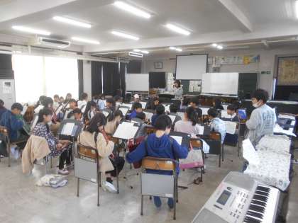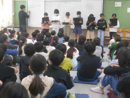 運動会明けのこの日の朝、 3Fの音楽室に急ぐ5年生がたくさんいました。 12月5日に開催される連合音楽会に向けての練習のためです。 練習できるのはわずか15〜20分ほどです。 次の目標に向けて、5年生は早速エンジン始動です!