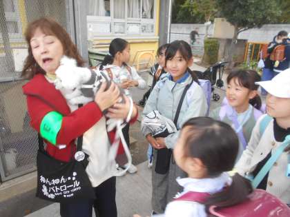 昨日は運動会でした。 (運動会の様子は後日掲載しますね!) 振り替え休みは月曜日に先取りしてしまいましたので、 この日は「登校」です。 疲れていないかな? 元気かな? と、思いながら校門でこどもたちを迎えました。 地域のわんわんパトロールの皆さんもいつも通りにこどもたちを迎えてくださいました。 本当に、いつも通り、 元気に笑顔で登校してくるこどもたちでした。