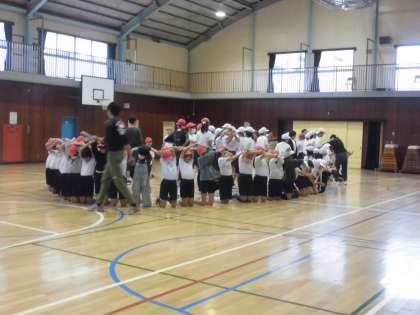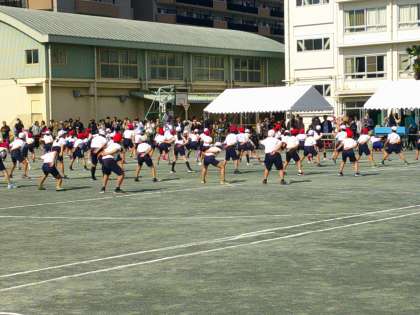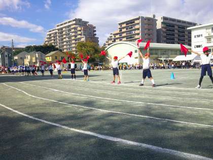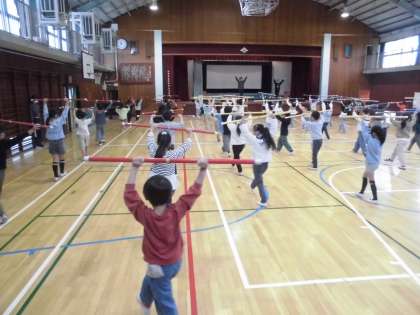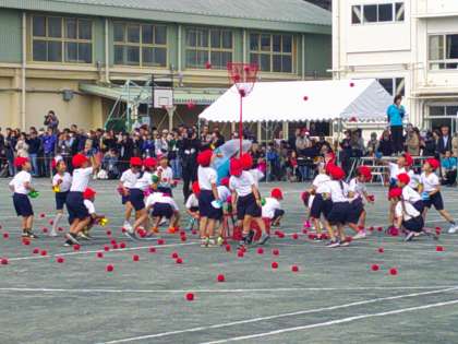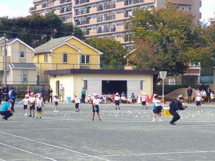 静かに動きを止める、素早く動く。最高学年らしい身体のコントロールに引き込まれました。競技は、作戦を工夫して盛り上がりました。