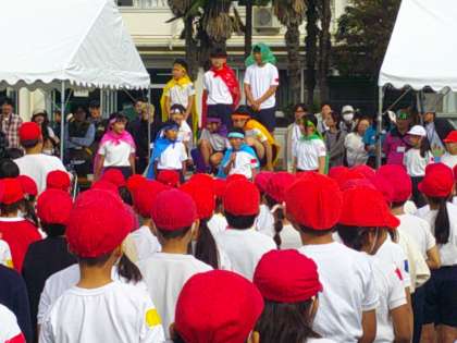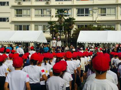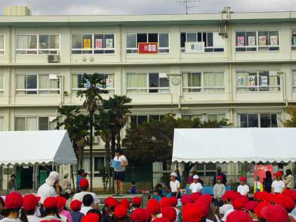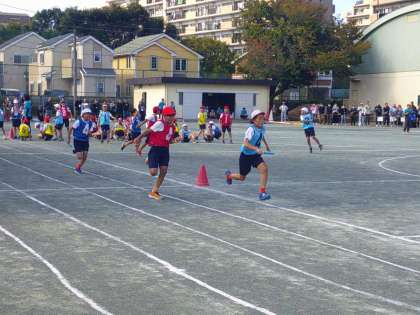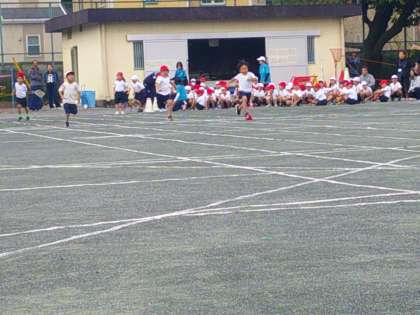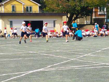 みんなとっても楽しそうに踊っていました。ほかの学年の人たちも、一緒に踊りながら応援していました。初めての運動会、頑張りました!