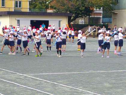 一人一人が棒を構える姿、気持ちを合わせて動く姿、かっこよかったです。棒引きも赤白それぞれに作戦を練って頑張りました。