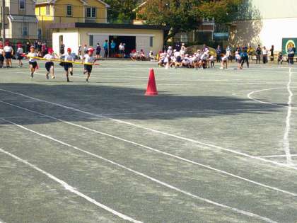 みんなの掛け声も、一人一人の動きも、とても力強いソーラン節でした。競技では棒を持つ4人が気持ちを一つにして走りました。