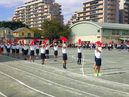 真っ赤な扇子に思いをこめて、舞い踊る5年生がとても美しかったです。手に汗握る綱引きも大いに盛り上がりました。
