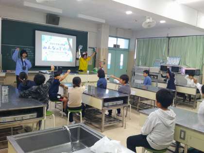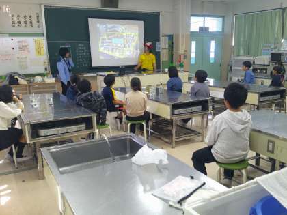 4年2組は3,4限に、水再生センターで行っていることなど、下水道の重要性について学習しました。スライドを使った説明や実験などに皆熱心に取り組みました。3組は1,2限、1組は5,6限に行いました。
