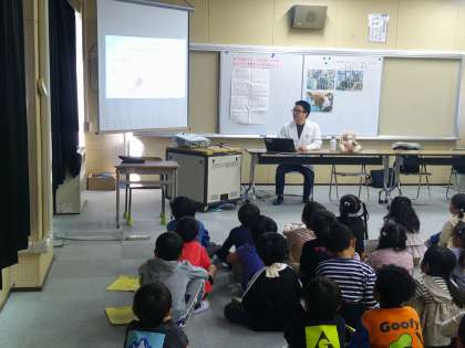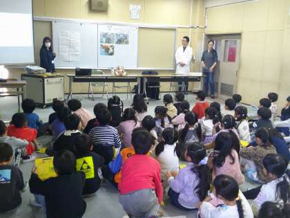 3校時の生活科の学習です。動物病院の先生から、ウサギやモルモットと仲良くなるために必要なことを教えていただきました。クイズ形式で問題を出してくださったり、児童の質問に答えてくださったりしました。皆熱心に取り組みました。