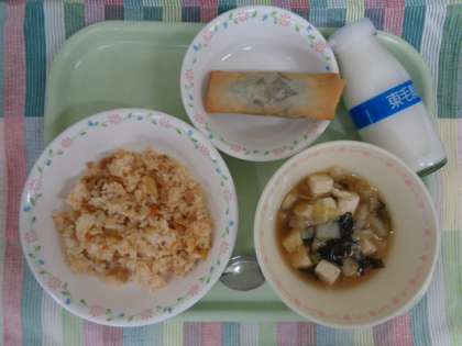 苦手な児童が多いひじきですが、今日の「パリパリひじき」はひじきを春巻きの皮で包んで作っているので、こどもたちもよく食べていました。「ひじき」と聞いて減らしている児童もいましたが、一口食べてみておいしかったのか、「やっぱり元の大きさにもどす」と、一人前きちんと食べられている様子も見られました。これを機に、ひじきに対する苦手意識がなくなればいいなと思います。