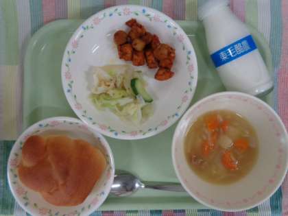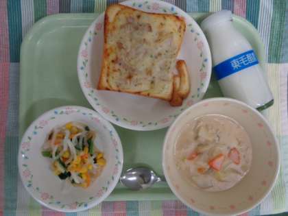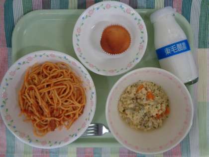 イタリア語で「料理」を意味する「クチーナ」(Cucina)を「ク(9)チー(1)ナ(7)」と読む語呂合わせから、9月17日は「イタリア料理」の日となっています。そこで、今日の給食はイタリア料理にしました。