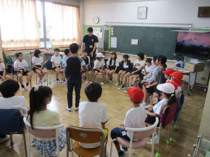 毎日運動会の練習が続く中、今日は子どもたちが大好きな「たてわり班活動」を行いました。それぞれの班で考えた遊びを思う存分に楽しむ子どもたち。下級生に配慮しながら活動を進める上級生の頼もしい姿と、上級生の言うことをよく聞きながら生き生きと活動する下級生の笑顔が融合し、温かい雰囲気が学校全体に広がっていました。