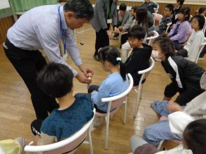 3年生の国語で、「すがたを変える大豆」を学習する時期となりました。今日の3・4校時にキッコーマンのみなさんをお招きして、「しょうゆ塾」の出前授業を行いました。授業の中では、しょうゆのしぼりかすを触ったり、嗅いだり、しょうゆの本来の色を観察したりと貴重な経験ができました。